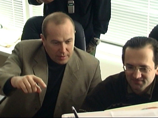 Подготовка к демонстрации игры зарубежной прессе, на заднем плане, в центре, 24 февраля 2004