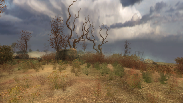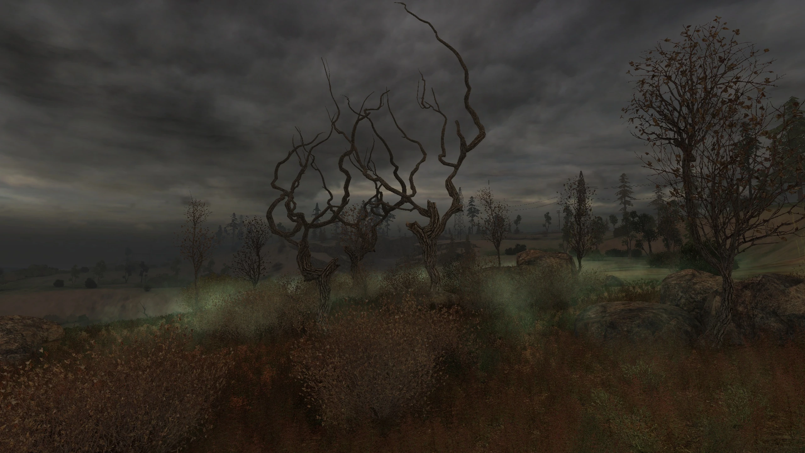Аномальная роща в xrCore' build 3844, aug 13 2009, позади виднеется аномалия «Битум».