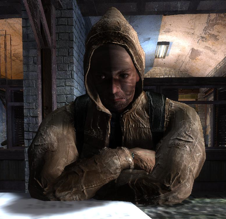 Вольный сталкер, завсегдатай бара «100 рентген», иногда занимающийся охотой с фамильным обрезом, который доставался от отца к сыну.