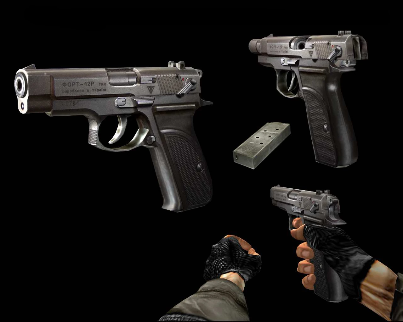 Пистолет украинского производства, предназначенный в основном для вооружения правоохранительных органов и силовых структур. Обладает лучшими по сравнению с ПМм точностью боя, приёмистостью и ёмкостью магазина. В основном попадает в Зону среди широко реализуемой здесь отбраковки (в основном это ранние образцы со всеми «детскими болезнями»). Тем не менее, пользуется спросом у сталкеров из-за достаточно высоких боевых характеристик.