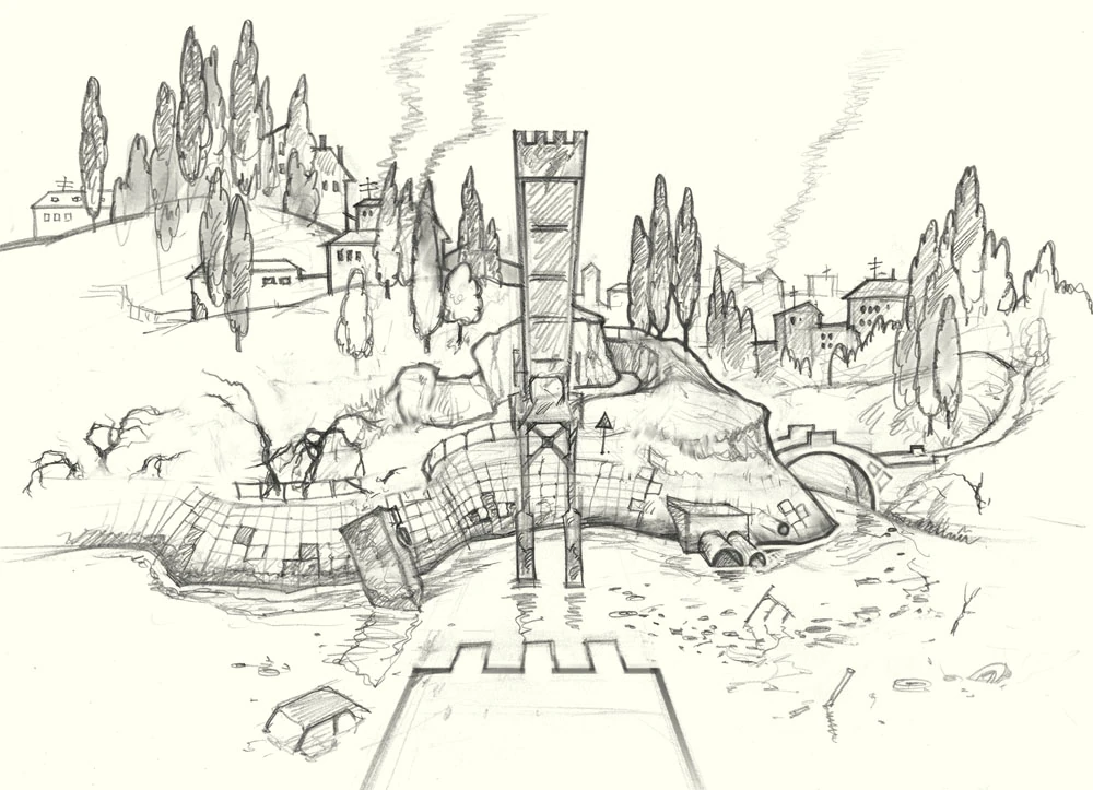 Игроки сражаются в забытой деревни. Карта дорогой делится на две тактических части. Борясь за артефактами, команды обязательно должны пересечь дорогу, как в пути за артефактом, так и на обратном пути.