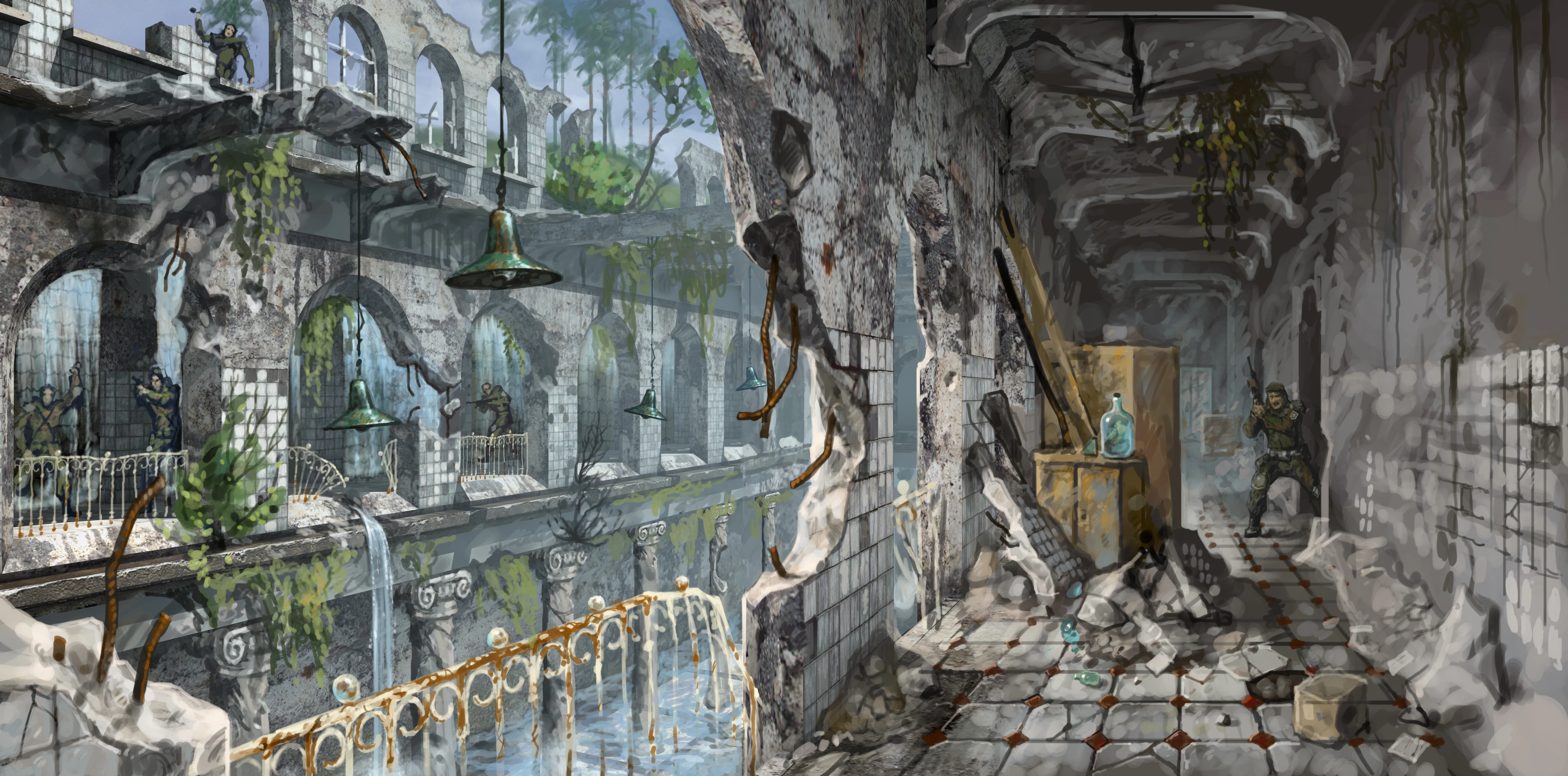 The fights take place on the territory of a neglected swimming pool, in very narrow and sealed corridors.